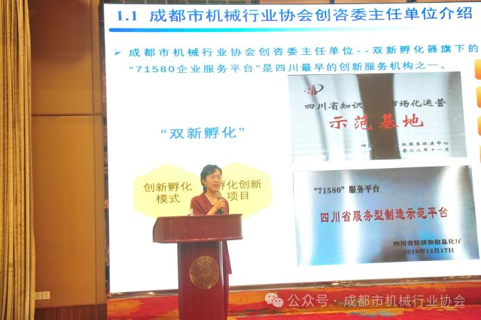 5月,成都市机械行业协会会员代表大会隆重召开。会上,平台负责人李惠琴作为创新咨询委员会主任做协会创新服务工作年度汇报。