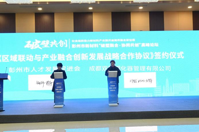 12月,71580平台受邀参加彭州市新材料“破壁融合·协同共创”高峰论坛,并与彭州市人才发展促进会签订区域联动与产业融合创新发展战略合作协议。