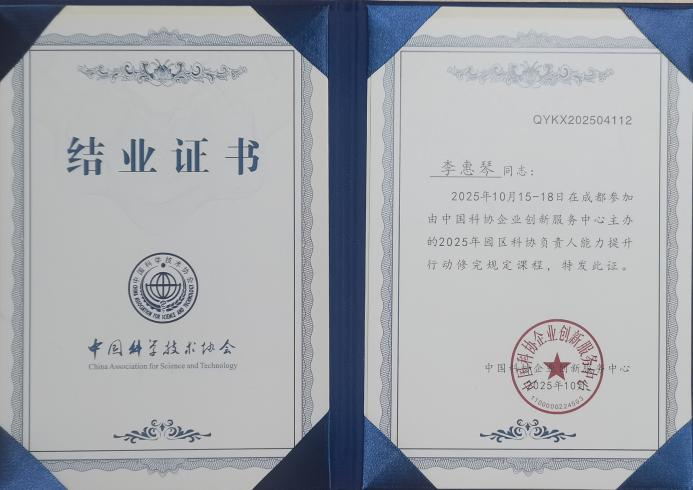 参加中国科协企业创新服务中心举办的科技服务专业能力提升培训,吸收前沿理念、提升服务专业度;在成都市科协系统科创服务能力提升培训中,71580平台服务专业性获领导点名表扬,团队成员获得电子科大颁发的园区服务能力专业培训证书。